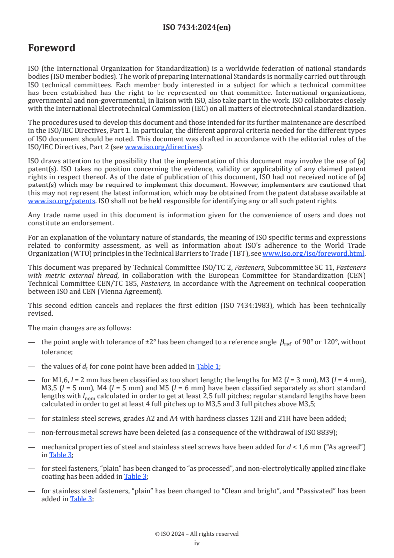 ISO 7434:2024 - Fasteners — Slotted set screws with cone point Released:18. 06. 2024