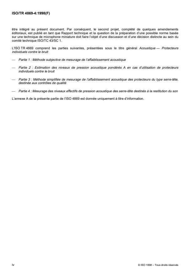 L'ISO TR 4869 comprend les parties suivantes, présentées sous le titre général Acoustique — Protecteurs