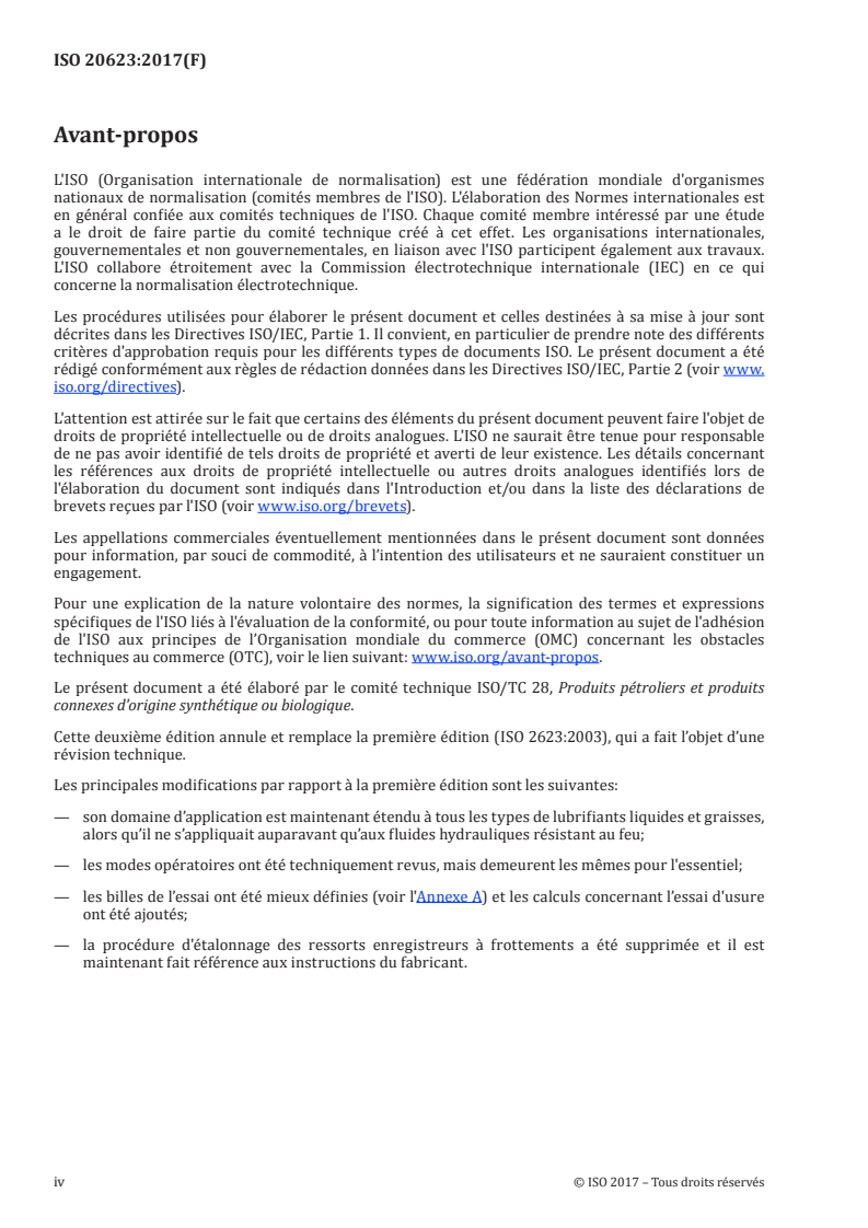 ISO 20623:2017 - Pétrole et produits connexes — Détermination des propriétés extrême pression et anti-usure des lubrifiants — Essai quatre billes (conditions Européennes) Released:12/11/2017