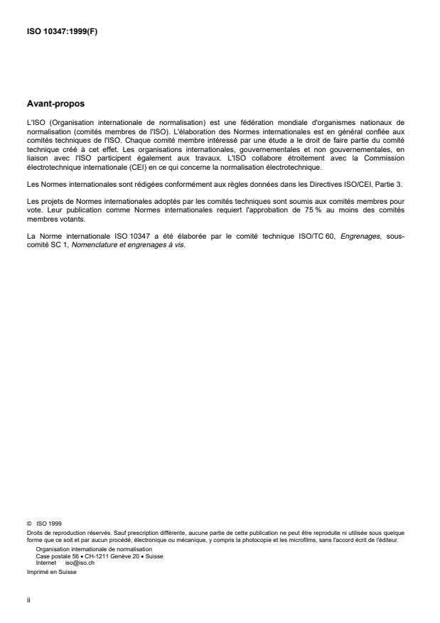 La Norme internationale ISO 10347 a été élaborée par le comité technique ISO/TC 60, Engrenages, sous-