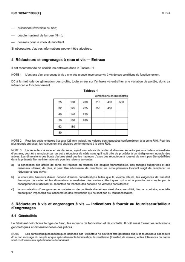 La présente Norme internationale s'applique aux engrenages à vis d’entraxe maximal 500 mm.
