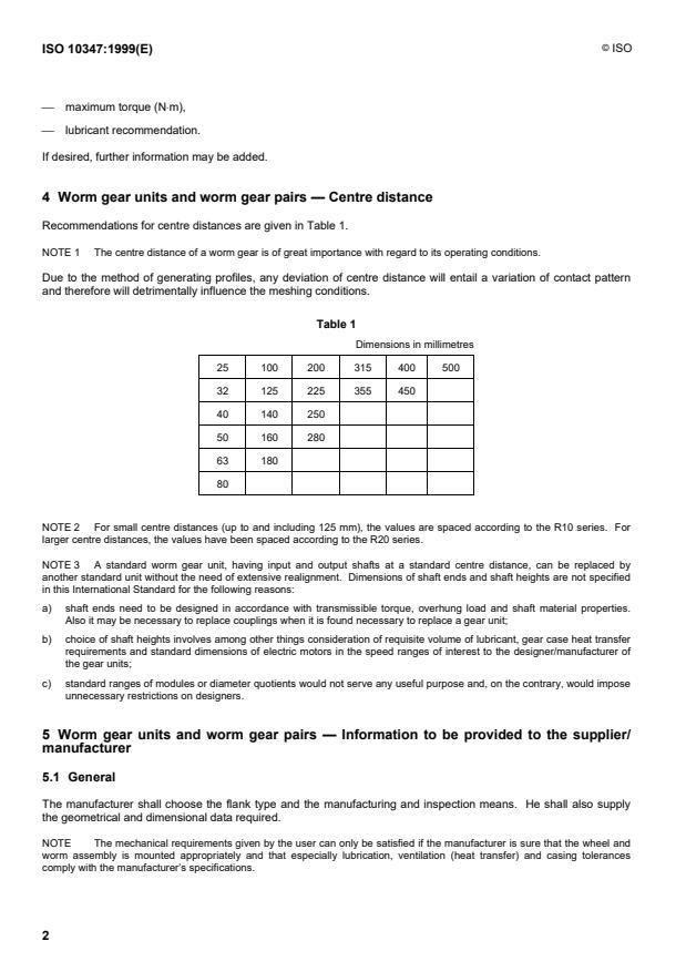 NOTE 3 A standard worm gear unit, having input and output shafts at a standard centre distance, can be replaced by