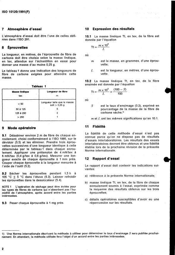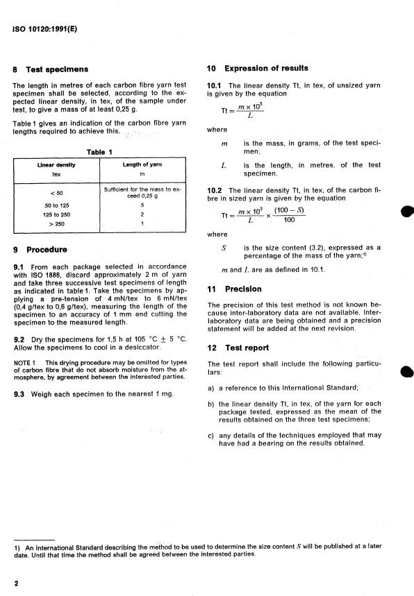 ISO 10120:1991 is a standard published by the International Organization for Standardization (ISO). Its full title is "Carbon fibre — Determination of linear density". This standard covers: Carbon fibre — Determination of linear density