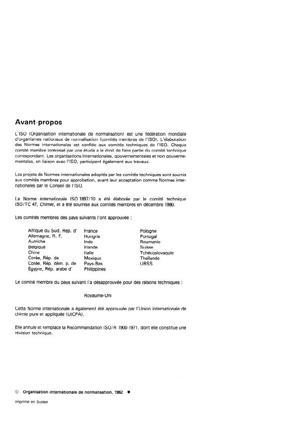 La Norme internationale ISO 1897/10 a été élaborée par le comité technique