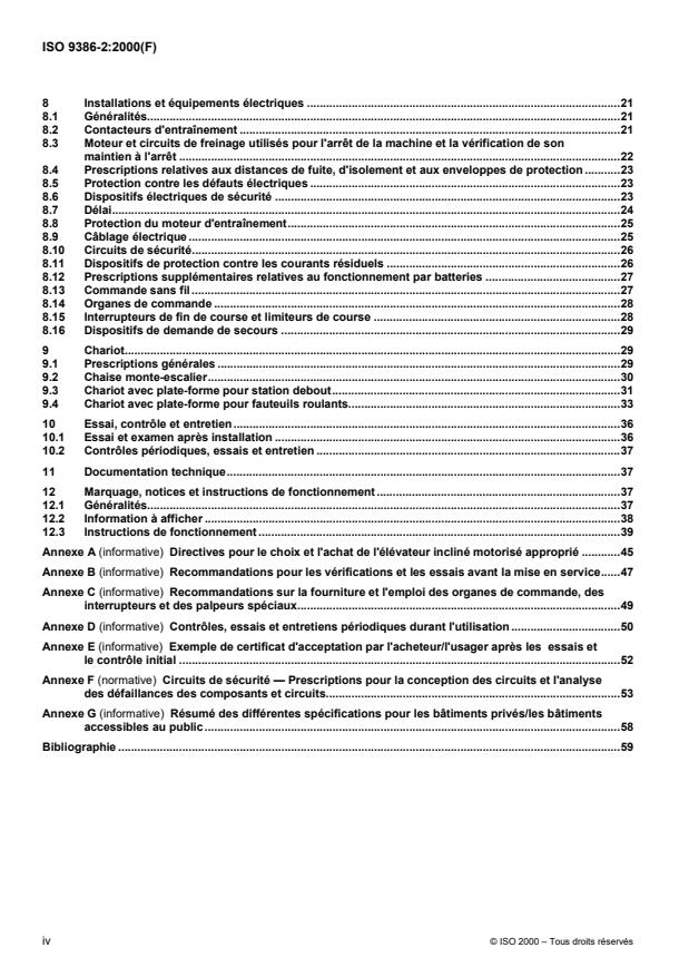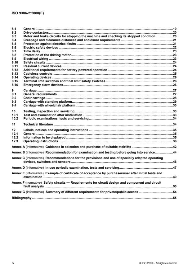 - Annexes: Annex F (normative) on safety circuits; informative annexes A–E and G provide purchaser guidance, testing recommendations and public/private access distinctions.