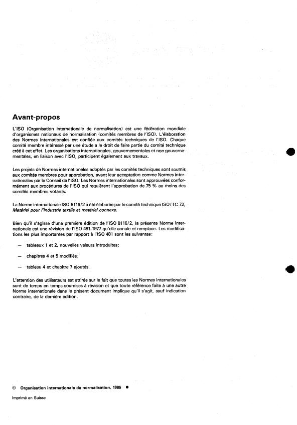 Although this is a first edition of IS0 8116/2, it is based on IS0 481-1977 which is now