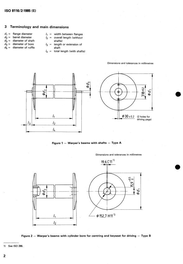 ISO 8116-2:1985 - Textile machinery and accessories -- Beams for winding