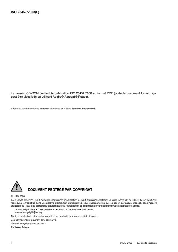 Le présent CD-ROM contient la publication ISO 25457:2008 au format PDF (portable document format), qui