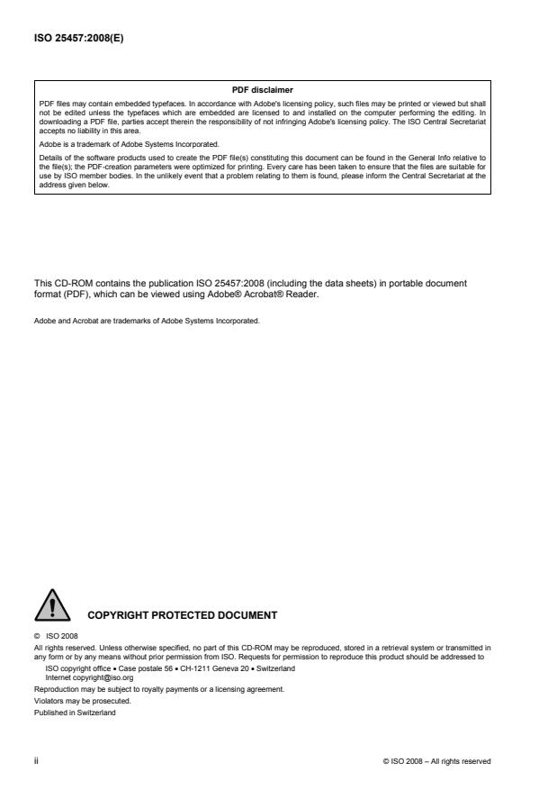 This CD-ROM contains the publication ISO 25457:2008 (including the data sheets) in portable document