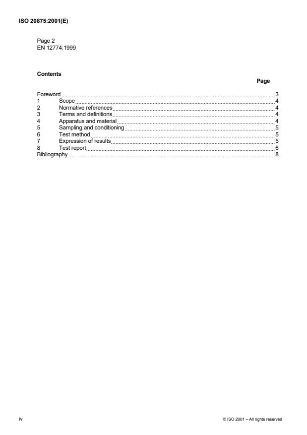 International Standard ISO 20875 was prepared by the European Committee for Standardization (as EN 12774:1999)