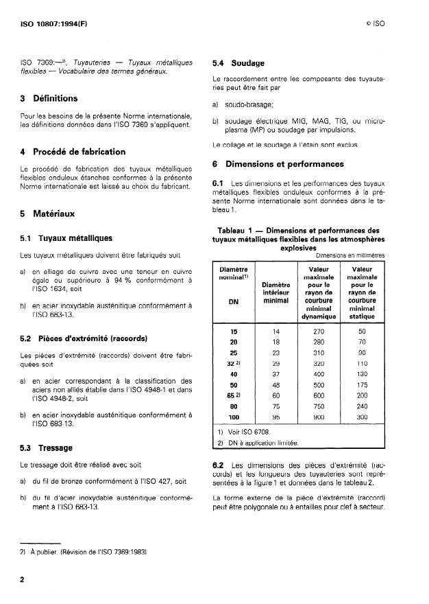 ISO 10807:1994 - Tuyauteries -- Tuyauteries métalliques flexibles onduleuses destinées a la protection de câbles électriques dans les atmospheres explosives