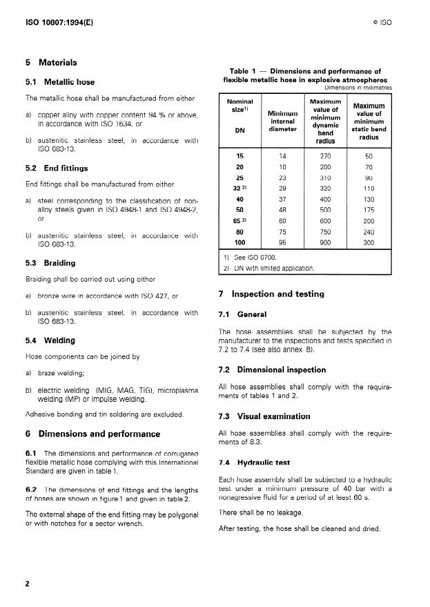 Keywords: ISO 10807:1994, corrugated flexible metallic hose, explosive atmospheres, electrical cable protection, type approval, hydraulic test, bending fatigue, hose assemblies.