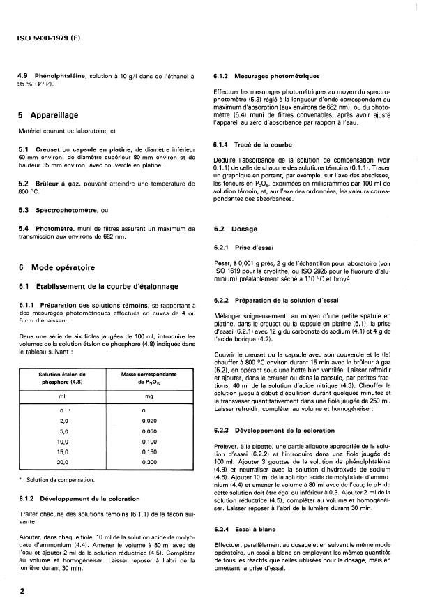 ISO 5930:1979 - Cryolithe, naturelle et artificielle, et fluorure d'aluminium a usage industriel -- Dosage du phosphore -- Méthode photométrique au molybdophosphate réduit