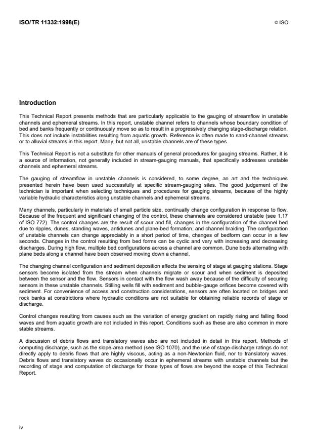 ISO/TR 11332:1998 is a technical report published by the International Organization for Standardization (ISO). Its full title is "Hydrometric determinations — Unstable channels and ephemeral streams". This standard covers: Hydrometric determinations — Unstable channels and ephemeral streams