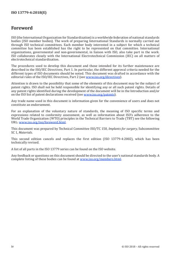 ISO 13779-4:2018 is classified under the following ICS (International Classification for Standards) categories: 11.040.40 - Implants for surgery, prosthetics and orthotics. The ICS classification helps identify the subject area and facilitates finding related standards.