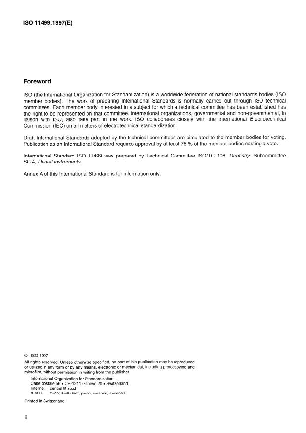 International Standard IS0 11499 was prepared by Technical Committee ISO/TC 106, Dentistry, Subcommittee