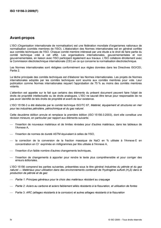 ISO 15156-3:2009 gives requirements and recommendations for the selection and qualification of CRAs (corrosion-resistant alloys) and other alloys for service in equipment used in oil and natural gas production and natural gas treatment plants in H2S‑containing environments, whose failure can pose a risk to the health and safety of the public and personnel or to the environment. ISO 15156-3:2009 can be applied to help to avoid costly corrosion damage to the equipment itself. It supplements, but does not replace, the materials requirements of the appropriate design codes, standards or regulations. ISO 15156-3:2009 addresses the resistance of these materials to damage that can be caused by sulfide stress‑cracking (SSC), stress‑corrosion cracking (SCC) and galvanically induced hydrogen stress cracking (GHSC). ISO 15156-3:2009 is concerned only with cracking. Loss of material by general (mass loss) or localized corrosion is not addressed. A non-exhaustive list of equipment is given to which this part of ISO 15156 is applicable, including permitted exclusions. ISO 15156-3:2009 applies to the qualification and selection of materials for equipment designed and constructed using conventional elastic design criteria. For designs utilizing plastic criteria (e.g. strain‑based and limit‑state designs), see ISO 15156-1:2009, Clause 5. ISO 15156-3:2009 is not necessarily suitable for application to equipment used in refining or downstream processes and equipment.