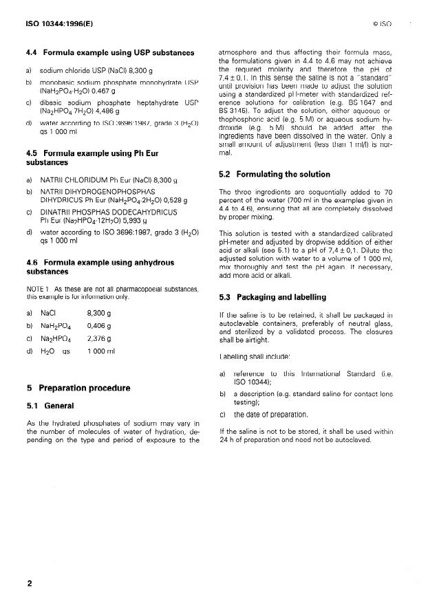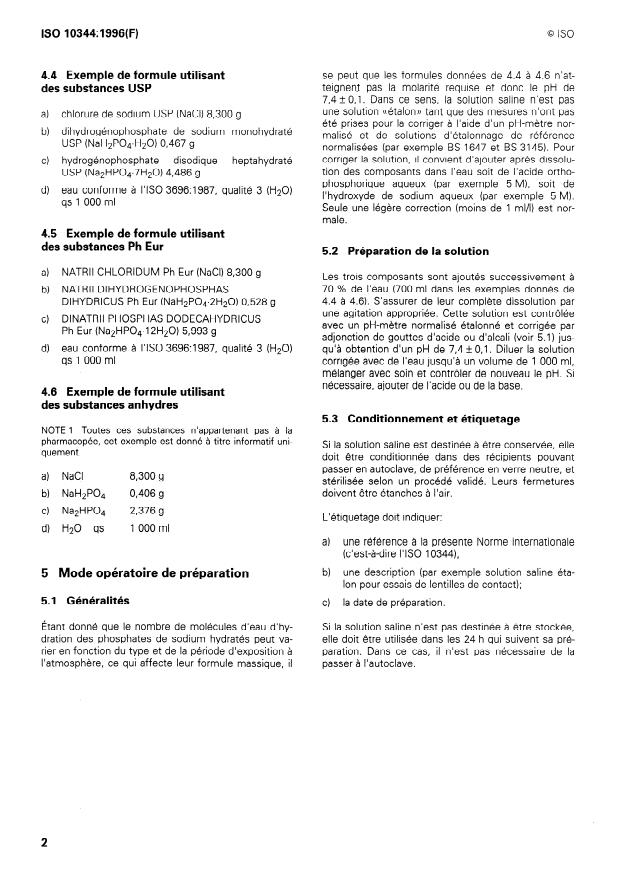 ISO 10344:1996 - Optique et instruments d'optique -- Lentilles de contact -- Solution saline pour les essais des lentilles de contact