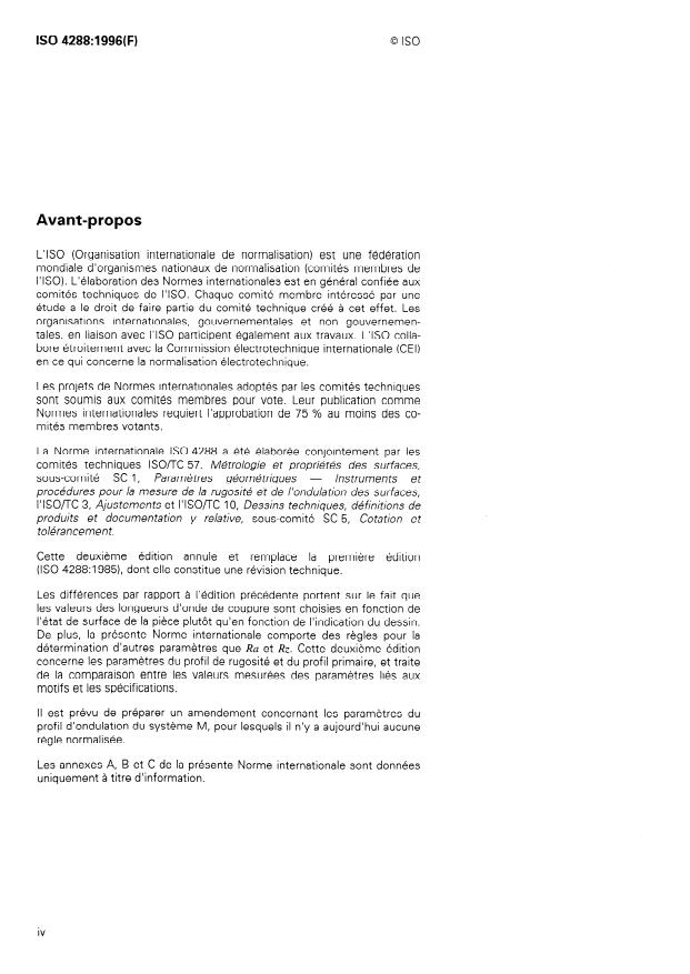 ISO 4288:1996 is a standard published by the International Organization for Standardization (ISO). Its full title is "Geometrical Product Specifications (GPS) — Surface texture: Profile method — Rules and procedures for the assessment of surface texture". This standard covers: Specifies the rules for comparison of the measured values with the tolerance limits for surface texture parameters defined in ISO 4287, ISO 12085, ISO 13565-2 and ISO 13565-3. It also gives rules for measuring roughness profile parameters by using stylus instruments according to ISO 3274. Replaces the first edition.