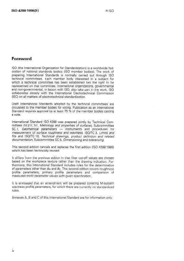 ISO 4288:1996 - Geometrical Product Specifications (GPS) -- Surface texture: Profile method -- Rules and procedures for the assessment of surface texture
