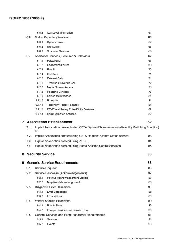 ISO/IEC 18051:2005 specifies the Services and Event Reports for Computer-Supported Telecommunications Applications, Phase III (CSTA). It focuses on providing application service interfaces to a Switching Function, Computing Function and a Special Resource Function. A CSTA application interface is disassociated from the various user-network interfaces and network-network interfaces CSTA applications may serve, observe or manipulate. Because CSTA operates with existing telecommunications interfaces indirectly, it operates generically, so that differences among various existing interfaces are hidden from CSTA applications. Support of user-to-network interfaces is outside the scope of ISO/IEC 18051:2005. Although most terminal equipment (TE) is suitable for use with CSTA, there will be instances of TE that will not be suitable in certain circumstances. Examples are: FAX terminals and modems that are unable to adjust their transmission modes to prevent carrier conflict when both parties are alerted via CSTA during call establishment; and Functional terminals that perform telecommunication functions outside the control of the Switching Function. Services defined in ISO/IEC 18051:2005 allow functional integration between a computing network and a telecommunications network. Computing platforms, i.e. Application Programming Interfaces (APIs) that support such functionally-integrated applications are outside the scope of ISO/IEC 18051:2005. ISO/IEC 18051:2005 is part of a suite of CSTA International Standards and Technical Reports that provide a comprehensive description of the architectural and practical issues involved in applying, implementing and utilizing CSTA-based CTI applications.