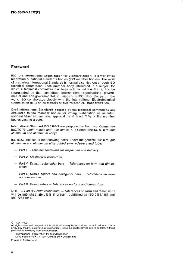 ISO 6363-5:1992 - Wrought aluminium and aluminium alloy cold-drawn rods/bars and tubes
