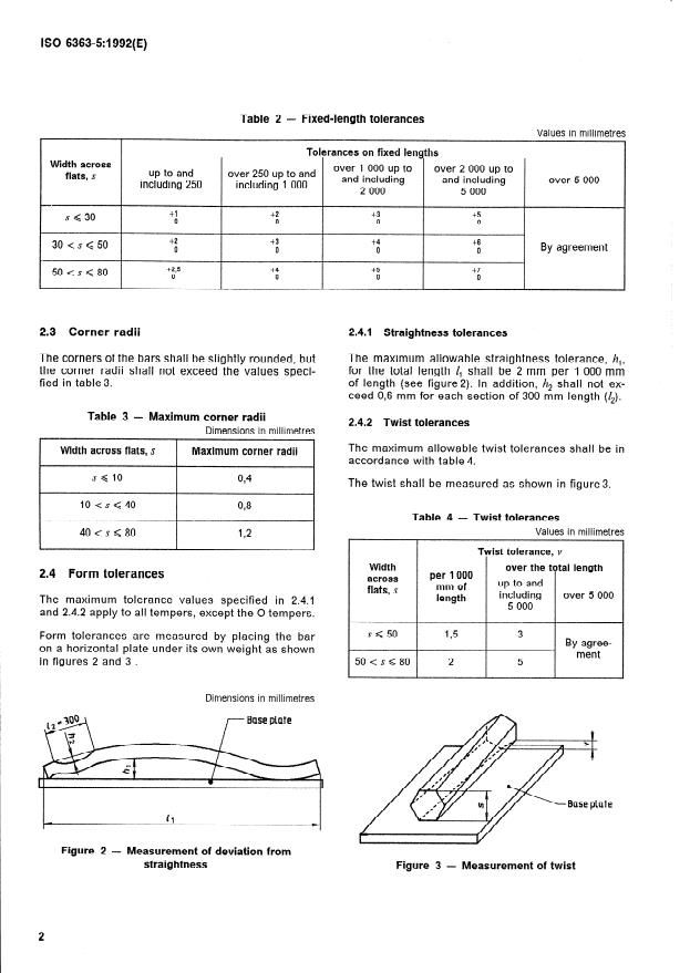 Specifies the tolerances on form (straightness, twist) and dimensions (on width across flats, on fixed-length bars) of bars with width across flats up to and including 80 mm.