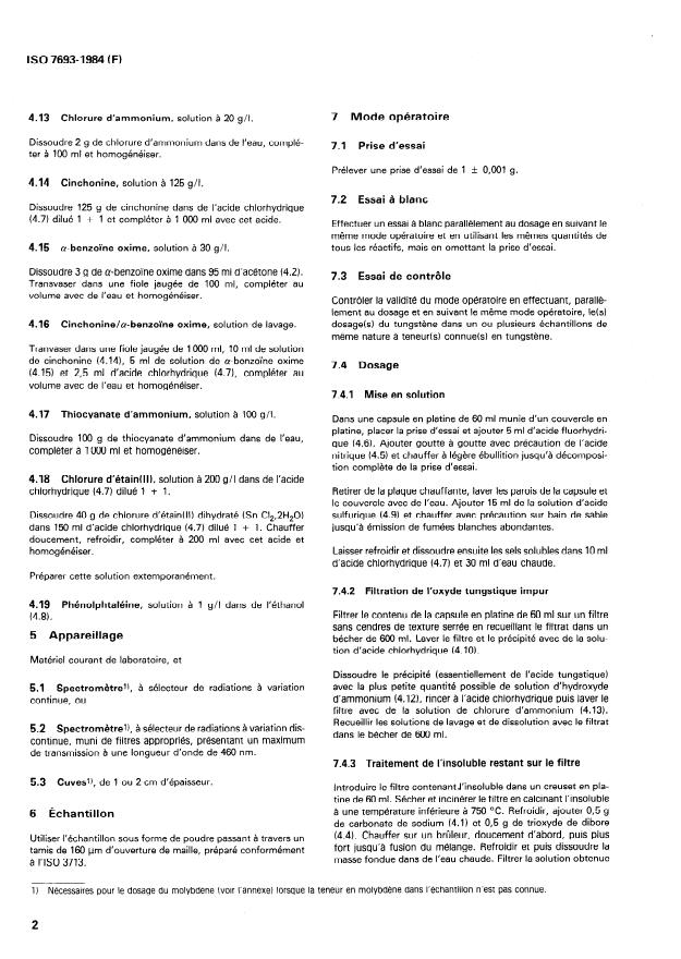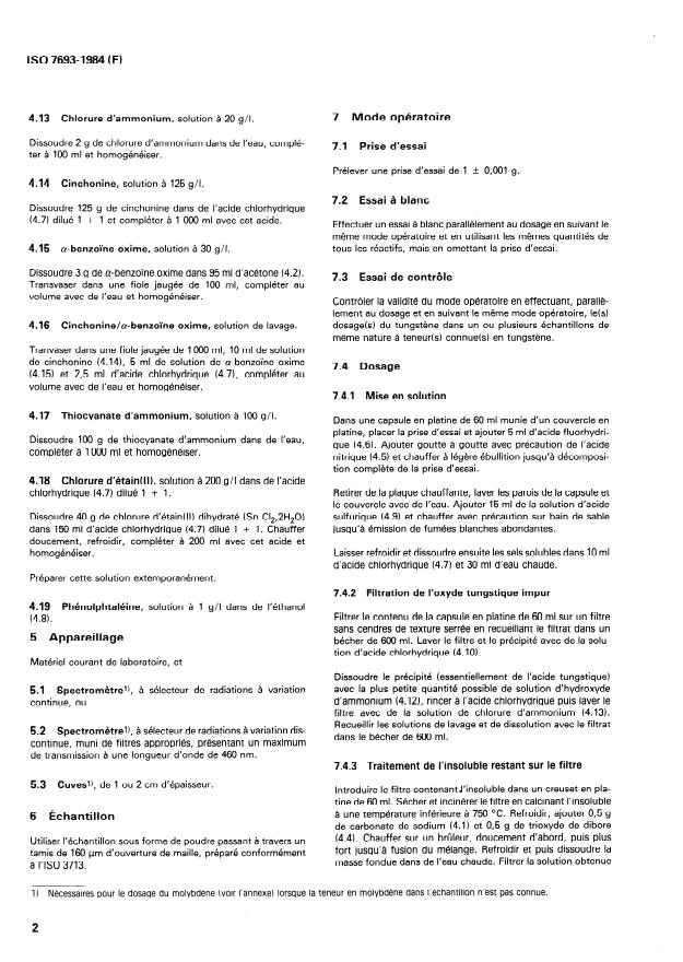 Keywords: ISO 7693:1984, ferrotungsten, tungsten determination, cinchonine gravimetric method, molybdenum interference, spectrometric determination, tungsten content.