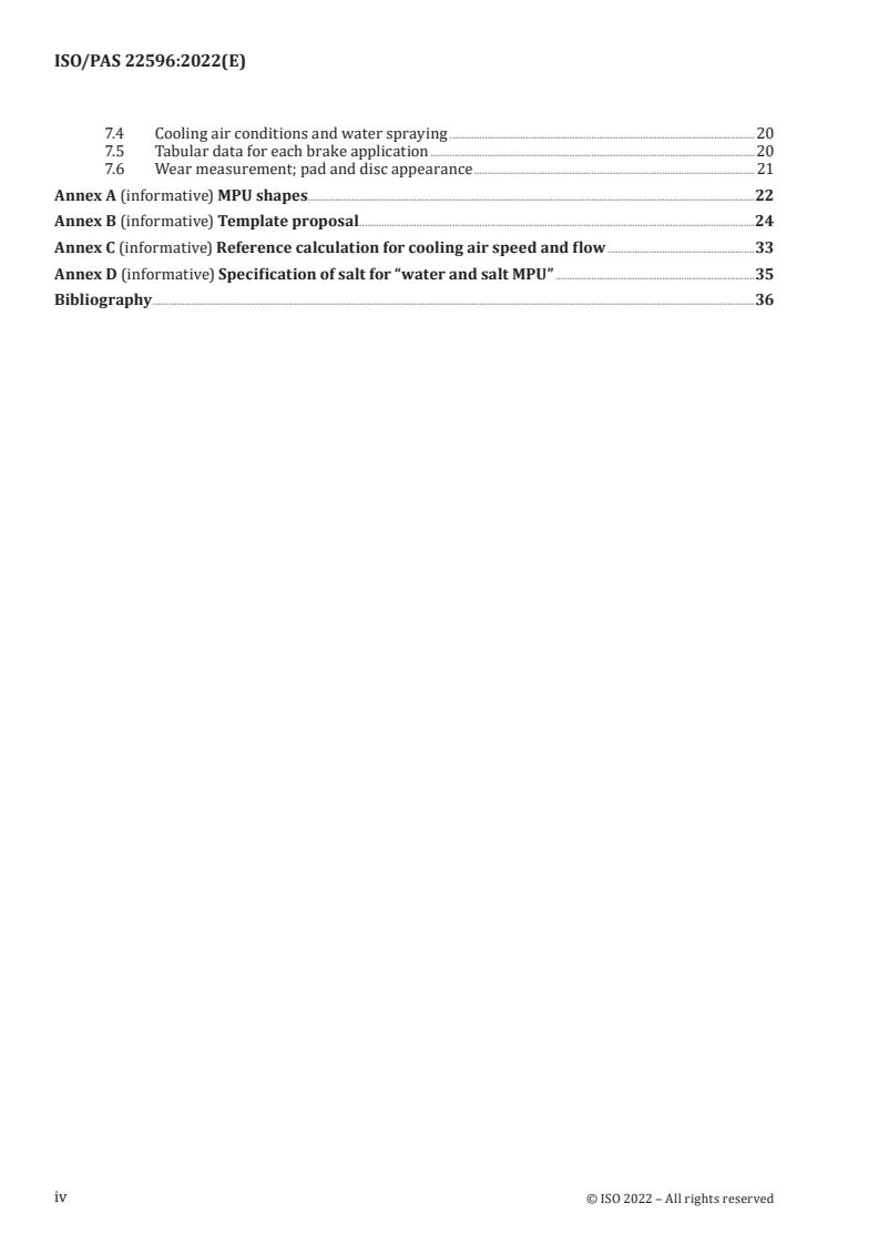 ISO/PAS 22596:2022 is a technical specification published by the International Organization for Standardization (ISO). Its full title is "Road vehicles - Brake lining friction materials - Dynamometer metal pick-up generation procedure for disc brakes". This standard covers: This document describes test procedures for assessing the influence of pressure, temperature and water/salt water on the generation of metal pick-up (MPU) for a given friction material in combination with a specific brake disc. There are multiple tests to investigate the MPU generation issue for different types of friction materials (so called NAO and low metallic materials) under critical environmental and working conditions: influence of water and salt water, high temperatures and high pressures and low temperatures and low pressures. This document supports the friction material development process and selection of friction materials for new brake applications.