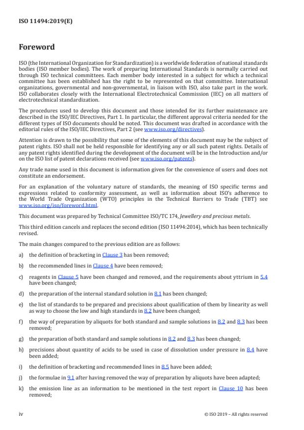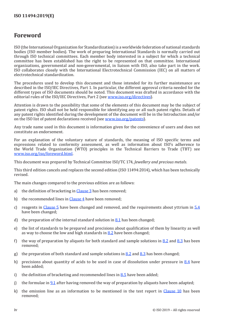 ISO 11494:2019 - Jewellery and precious metals — Determination of platinum in platinum alloys — ICP-OES method using an internal standard element Released:7/10/2019