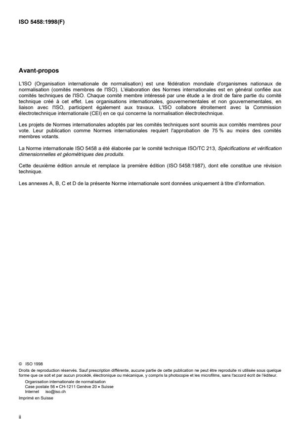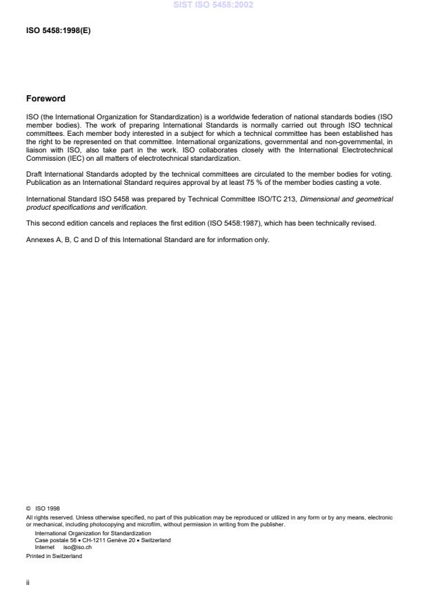 International Standard ISO 5458 was prepared by Technical Committee ISO/TC 213, Dimensional and geometrical
