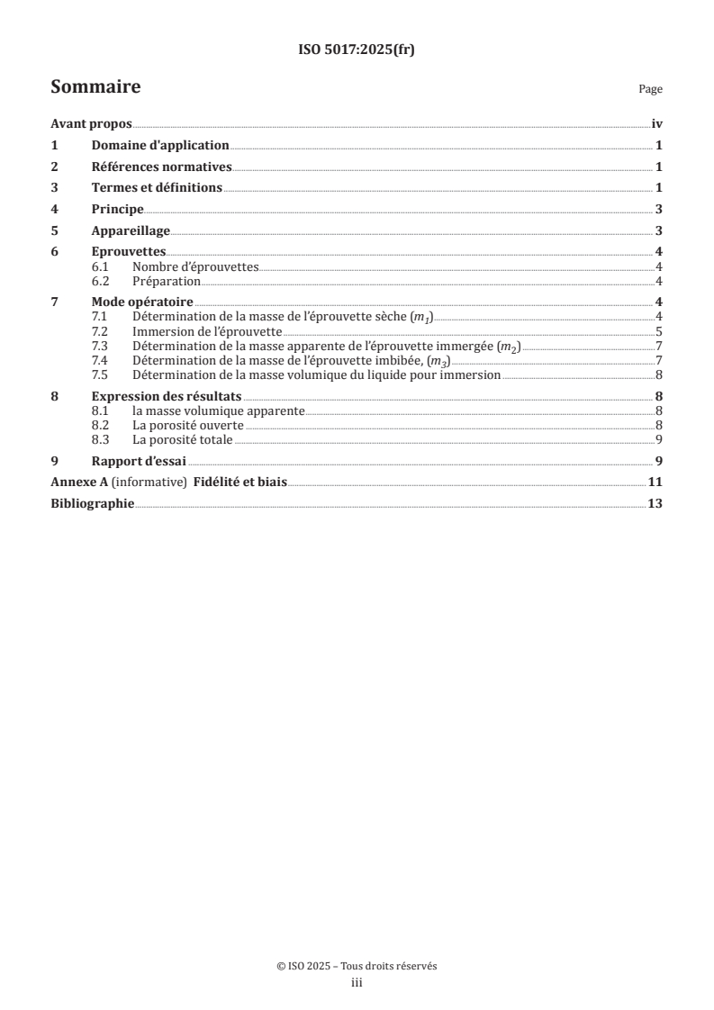 ISO 5017:2025 - Produits réfractaires façonnés denses — Détermination de la masse volumique apparente, de la porosité ouverte et de la porosité totale