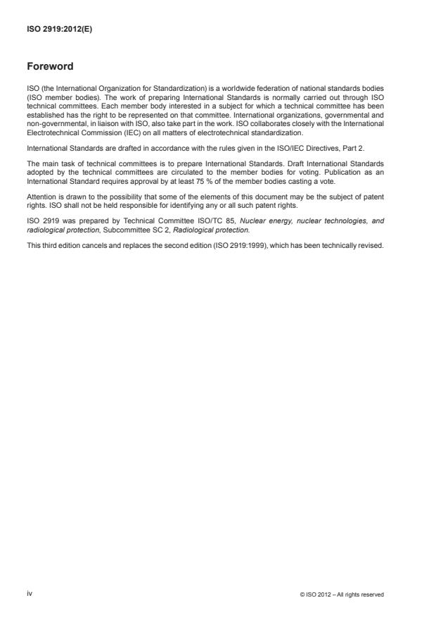 ISO 2919:2012 is classified under the following ICS (International Classification for Standards) categories: 13.280 - Radiation protection. The ICS classification helps identify the subject area and facilitates finding related standards.