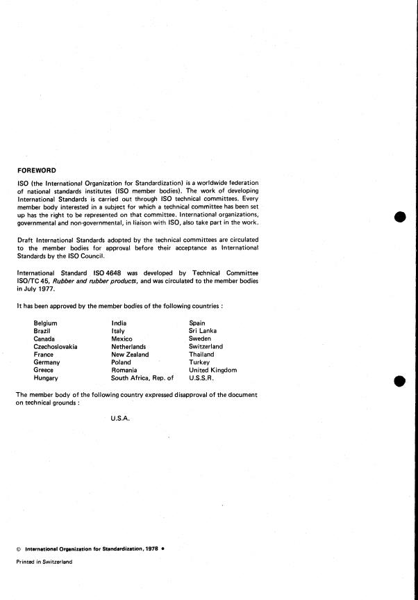 L‘Amendement 1 à la Norme internationale IS0 4648-1978 a été établi par le comité technique ISO/TC 45, Élastomères etproduitsa
