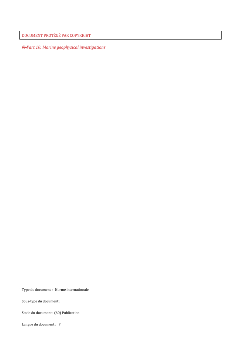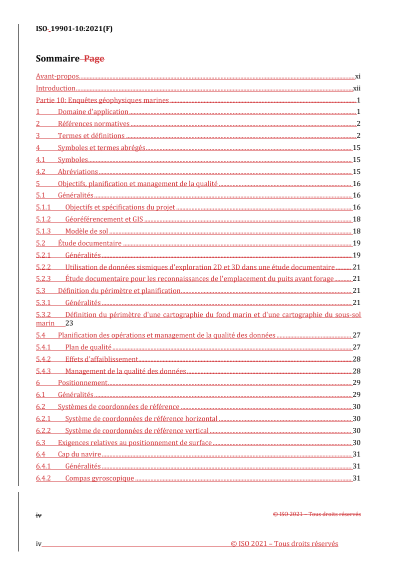 REDLINE ISO 19901-10:2021 - Industries du pétrole et du gaz naturel — Exigences spécifiques relatives aux structures en mer — Partie 10: Enquêtes géophysiques marines Released:12. 10. 2023