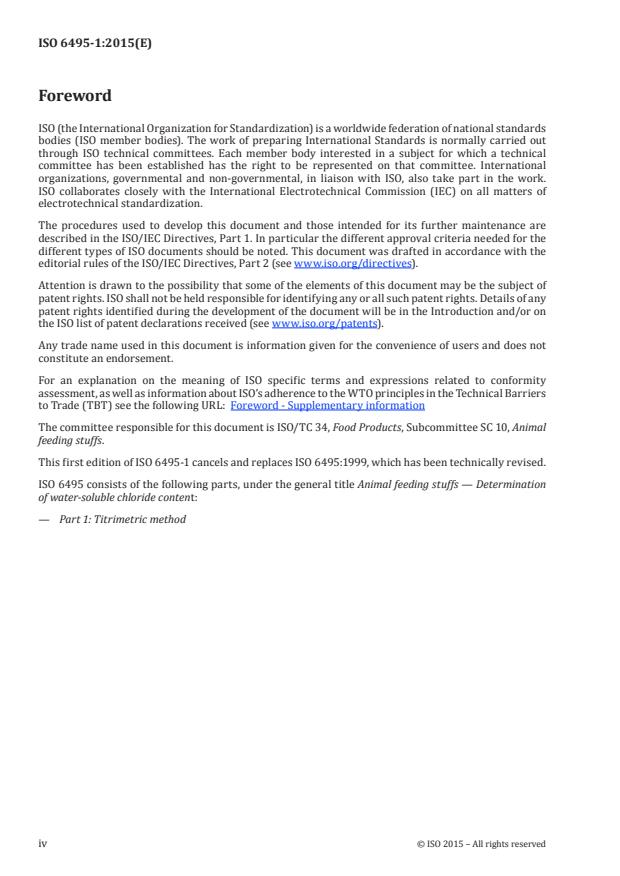 ISO 6495-1:2015 is a standard published by the International Organization for Standardization (ISO). Its full title is "Animal feeding stuffs - Determination of water-soluble chlorides content - Part 1: Titrimetric method". This standard covers: ISO 6495-1:2015 specifies a method for the determination of water-soluble chloride content, expressed as sodium chloride, of animal feeding stuffs. This method is applicable to animal feeding stuffs containing water-soluble chloride content, expressed as sodium chloride, ≥0,05 %.