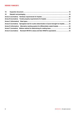 ISO 11949:2016 specifies requirements for single and double cold-reduced low-carbon mild steel electrolytic tinplate in the form of sheets or coils. Single cold-reduced tinplate is generally specified in nominal thicknesses that are multiples of 0,005 mm, from 0,150 mm up to and including 0,600 mm. Double cold-reduced tinplate is generally specified in nominal thicknesses that are multiples of 0,005 mm, from 0,100 mm up to and including 0,360 mm. ISO 11949:2016 applies to coils and sheets cut from coils in nominal minimum rolling widths of 600 mm.[1] [1] Nominal minimum rolling widths of 500 mm may be applied by agreement between the purchaser and the manufacturer.
