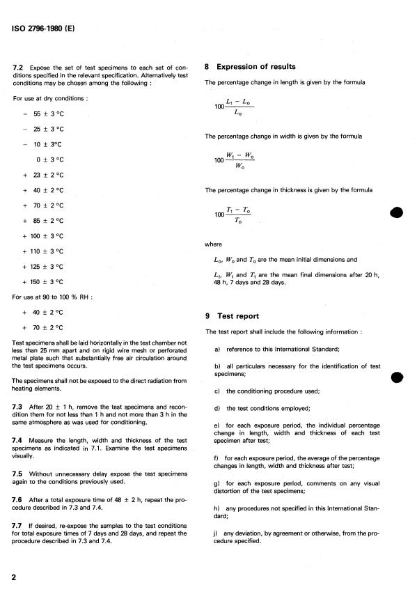 ISO 2796:1980 - Cellular plastics — Test for dimensional stability of rigid materials Released:12/1/1980