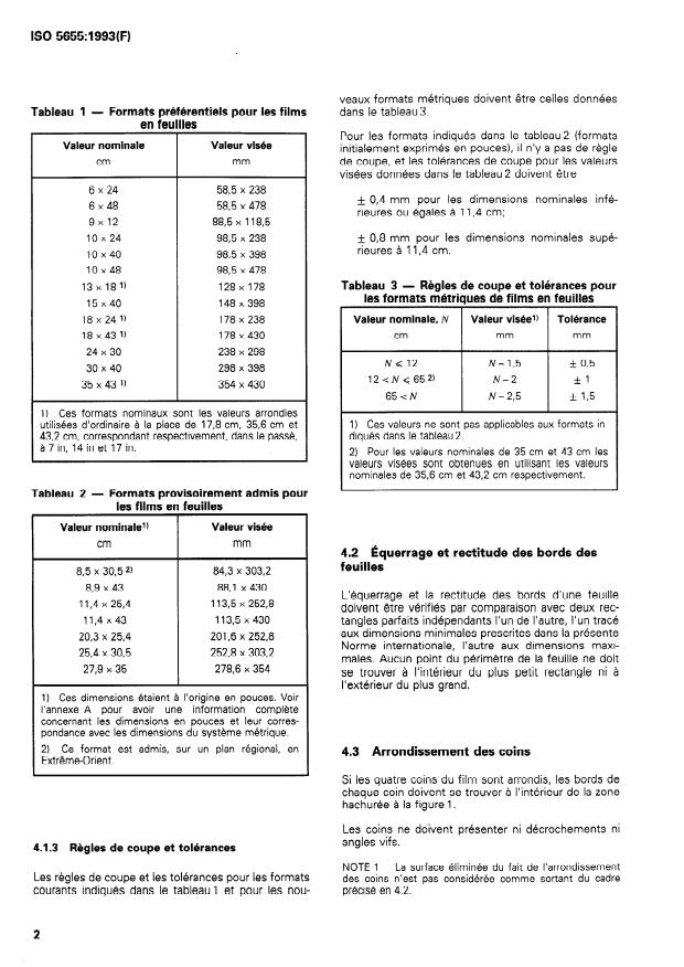ISO 5655:1993 - Photographie -- Dimensions des films -- Radiographie industrielle