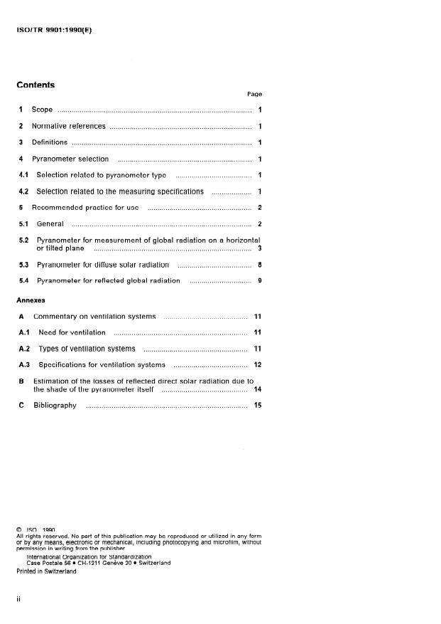 ISO/TR 9901:1990 is a technical report published by the International Organization for Standardization (ISO). Its full title is "Solar energy — Field pyranometers — Recommended practice for use". This standard covers: Solar energy — Field pyranometers — Recommended practice for use