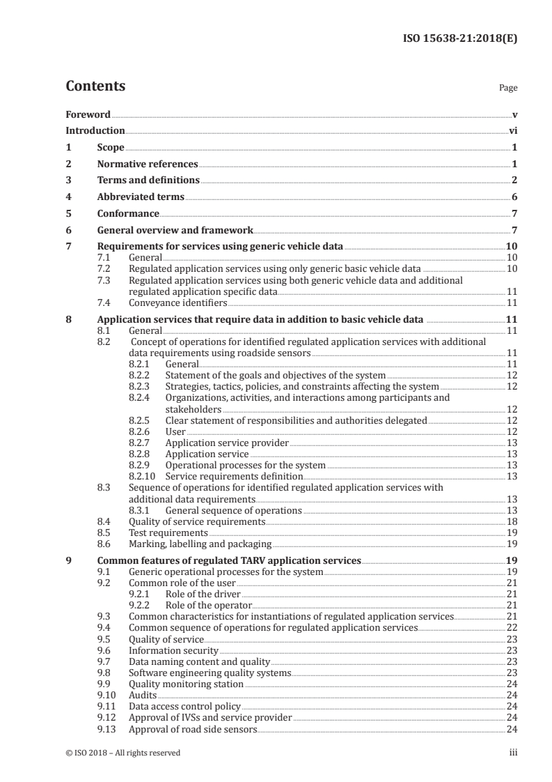 Keywords: ISO 15638-21:2018, intelligent transport systems, TARV, roadside sensors, regulated commercial freight vehicles, enforcement, vehicle monitoring, in‑vehicle systems, application service provider, tamper detection, data validation.