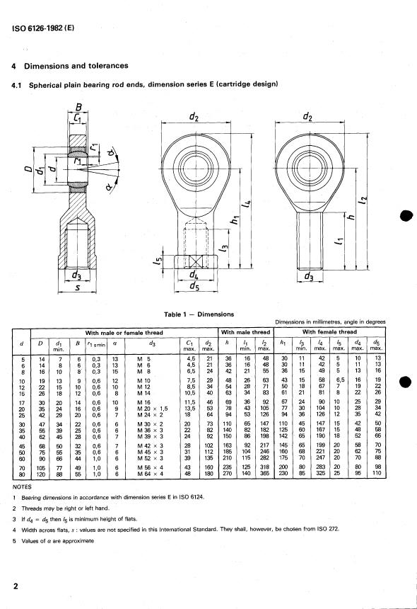 ISO 6126:1982 - Spherical plain bearing rod ends — Dimension series E and JK — Boundary dimensions and tolerances Released:5/1/1982