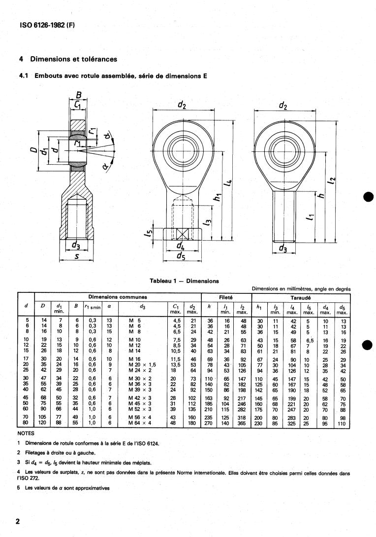 La présente Norme internationale fixe les dimensions des = diamètre nominal de l'alésage de la rotule