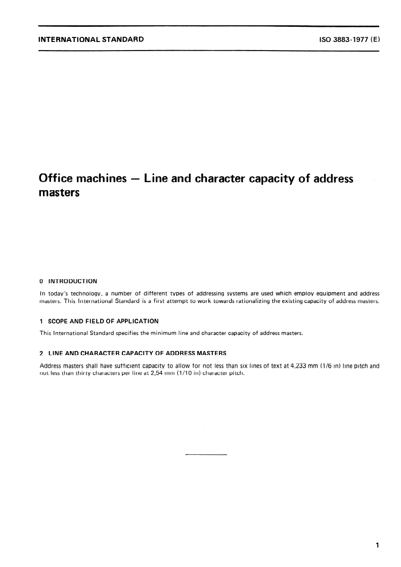 ISO 3883:1977 - Office machines — Line and character capacity of address masters/1/1977
