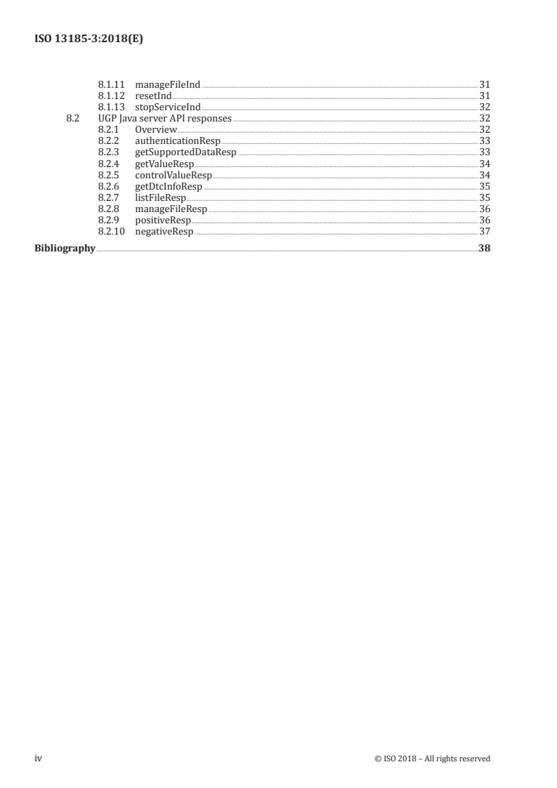 ISO 13185-3:2018 - Intelligent transport systems — Vehicle interface for provisioning and support of ITS Services — Part 3: Unified vehicle interface protocol (UVIP) server and client API specification Released:5/31/2018
