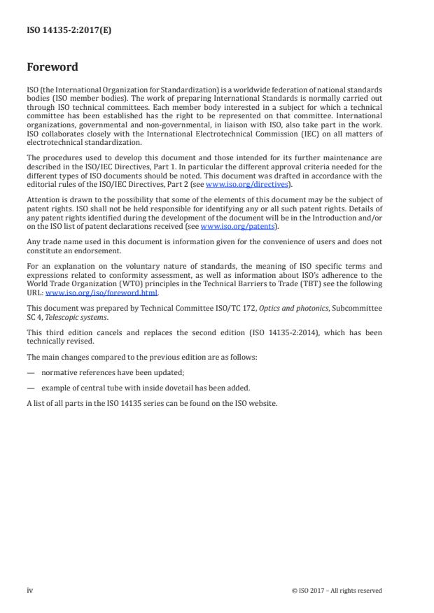 ISO 14135-2:2017 is a standard published by the International Organization for Standardization (ISO). Its full title is "Optics and photonics — Specifications for telescopic sights — Part 2: High-performance instruments". This standard covers: ISO 14135-2:2017 applies to high-performance telescopic sights, used on hand-held firearms and airguns. It contains a classification of the usage of telescopic sights and specifies interfaces, minimum requirements and tolerances to their performances. General-purpose telescopic sights are specified in ISO 14135-1.