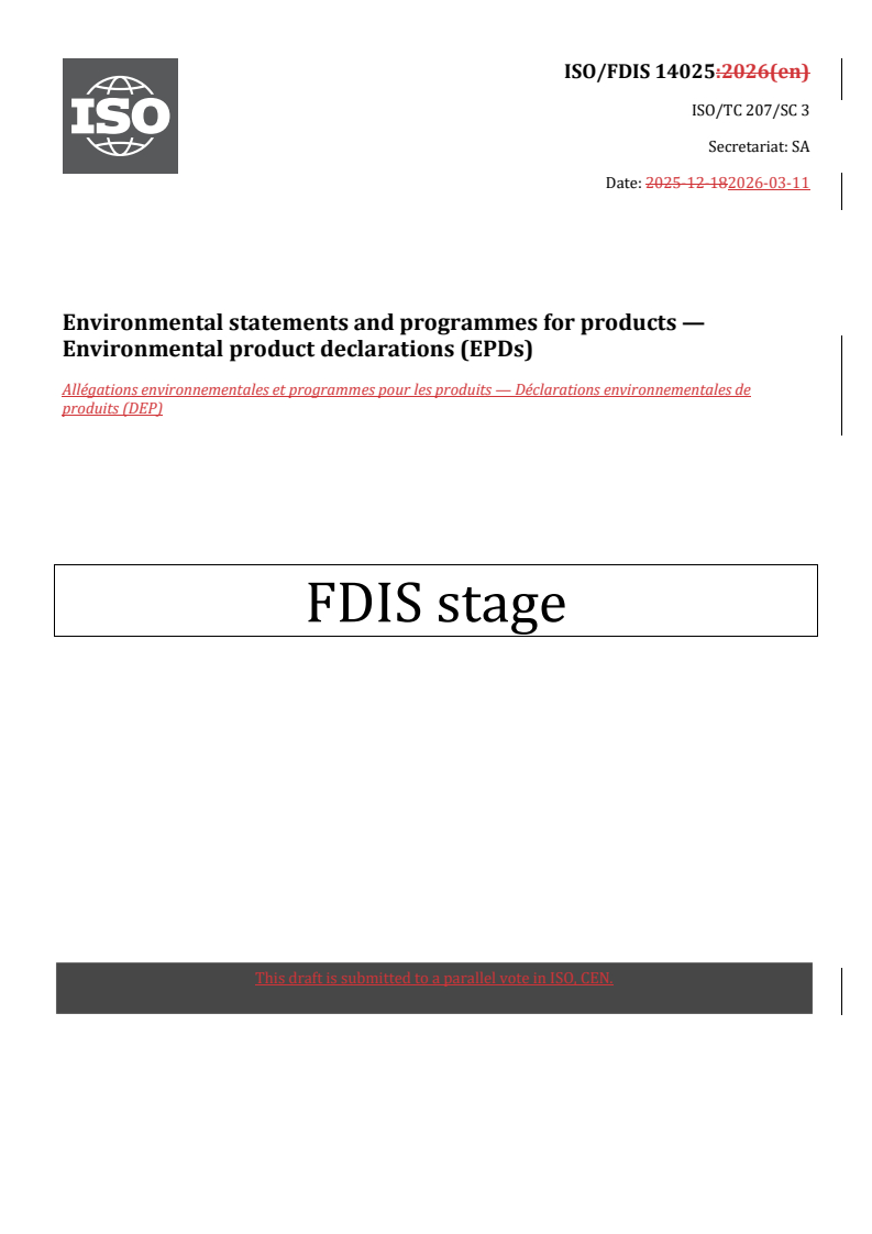 REDLINE ISO/FDIS 14025 - Environmental statements and programmes for products — Environmental product declarations (EPDs)
