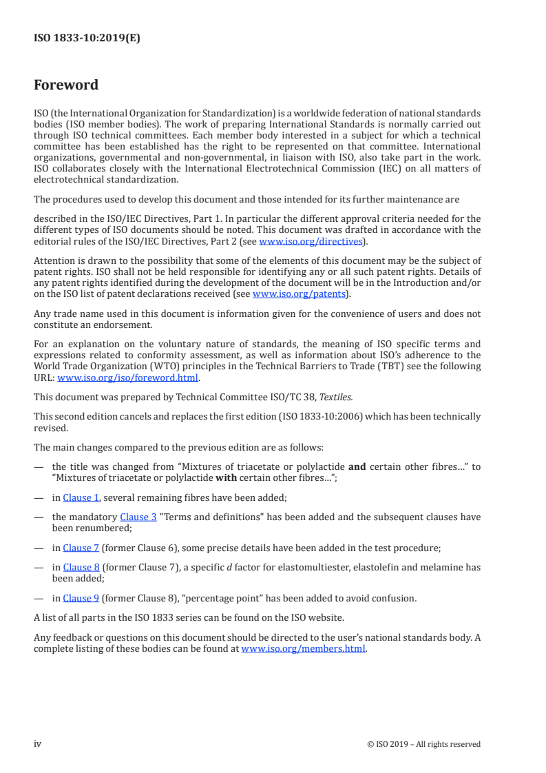ISO 1833-10:2019 - Textiles — Quantitative chemical analysis — Part 10: Mixtures of triacetate or polylactide with certain other fibres (method using dichloromethane) Released:4/12/2019