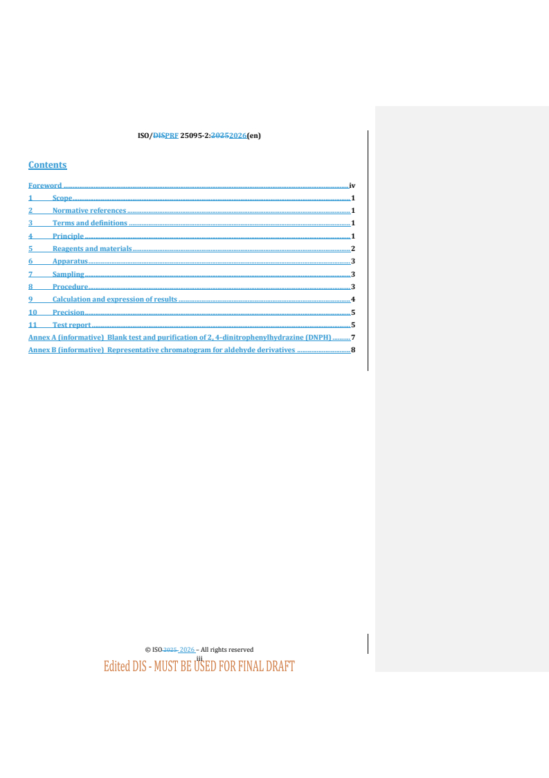 REDLINE ISO/PRF 25095-2 - Propylene oxide for industrial use — Part 2: Determination of aldehydes by liquid chromatography Released:15. 01. 2026
