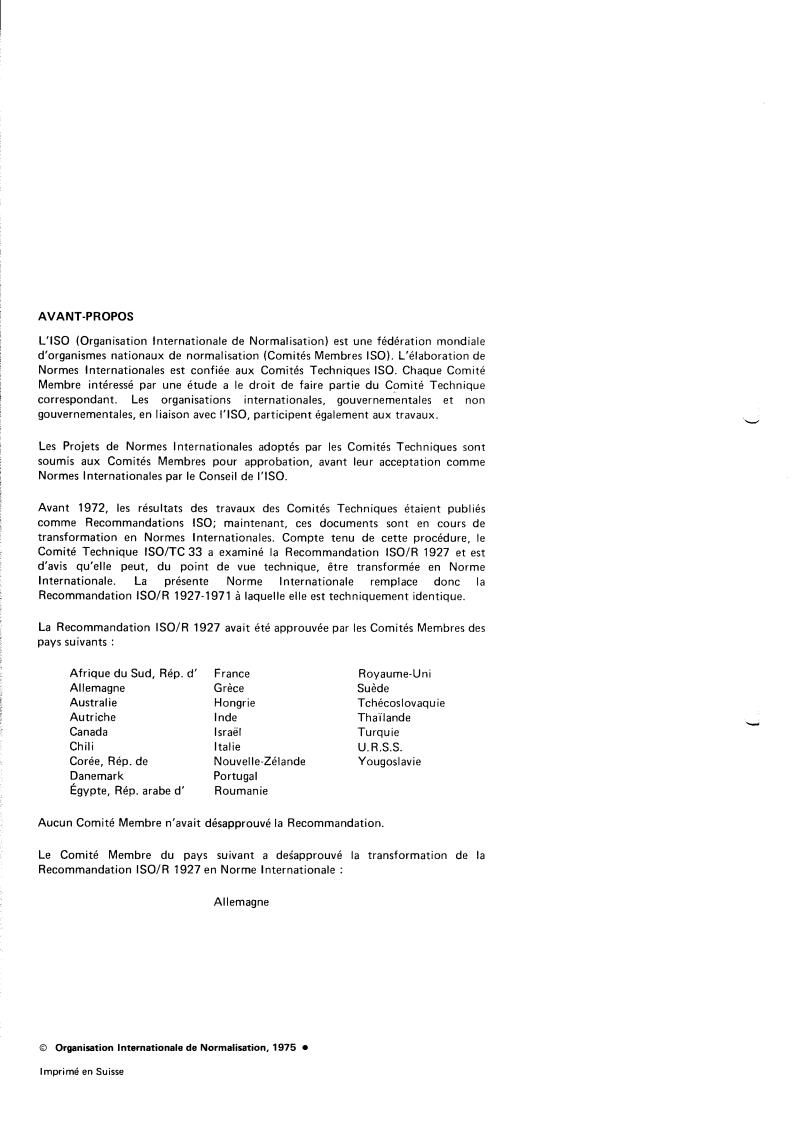 La Recommandation ISO/R 1927 avait été approuvée par les Comités Membres des